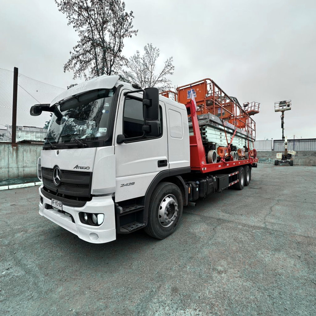 El traslado de nuestras plataformas de elevación en la cama del nuevo camión Mercedez-Benz resulta mucho más seguro y confiable, ya que la plataforma hidráulica adaptada está diseñada para soportar el peso y dimensiones de los equipos sin riesgos de inestabilidad. Al viajar completamente aseguradas , evitamos desgastes innecesarios, riesgos de maniobra o problemas en carretera, garantizando que las máquinas lleguen en perfectas condiciones al lugar de trabajo. Esta solución nos entrega mayor confianza operativa, eficiencia en los tiempos de traslado y la tranquilidad de que cada entrega se realiza bajo los más altos estándares de seguridad.